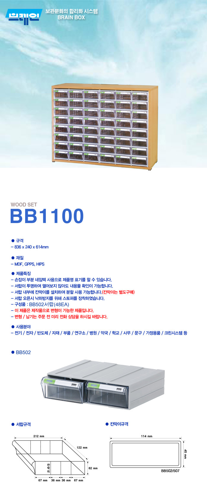> BB1100 투명 플라스틱 다용도 부품 정리 서랍 박스 상자 함 장