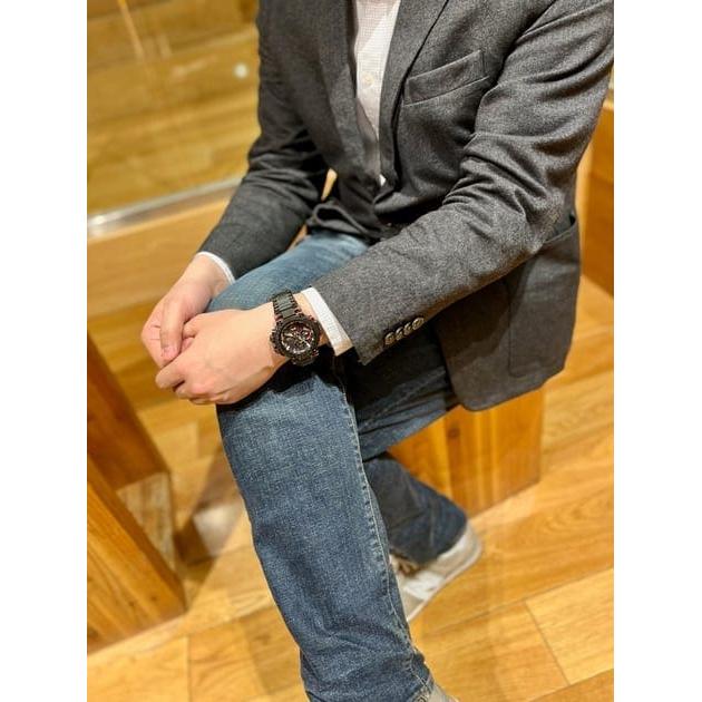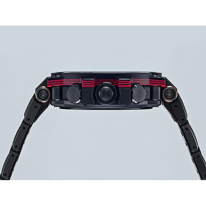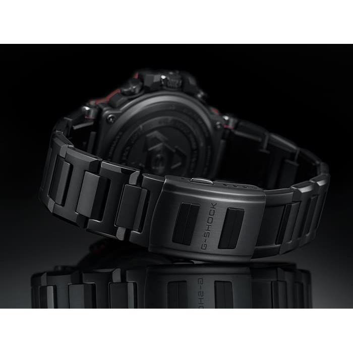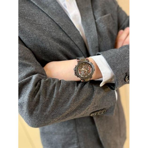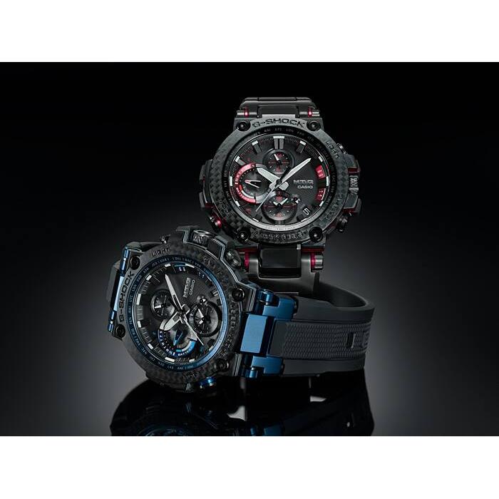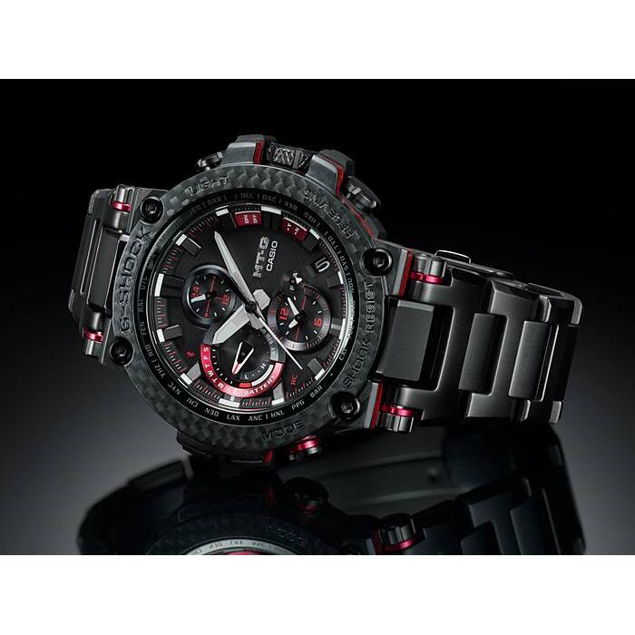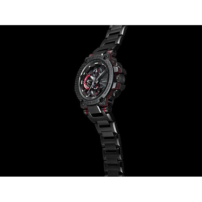 카본 클래드 MT-G 모델은 용융 금속과 수지의 내충격성 본체에 첨단 기술을 탑재했습니다. 코어 가드 구조는 밴드를 연결하는 러그 암과 파이프를 통합하여 모듈을 보호하는 데 사용됩니다. 중앙 케이스에 탄소 섬유 강화 레진이 사용되어 무게를 줄이고 충격 저항을 개선합니다. MT-G 시리즈 시계에 처음 선보이는 이 모델은 부드러운 중간 크기의 복합 밴드를 사용하여 착용성을 개선하고 케이스와 밴드 진동 방지 연결을 만듭니다. 베젤은 매우 가벼우면서도 견고한 탄소 소재로 제작되었습니다. 액센트 색상은 탄소 베젤의 코팅된 부분에 적용되며, 금속 부품의 가장자리에 거울 광택제를 적용하고 모든 표면에 헤어라인 마감을 적용하여 그 아름다움을 더욱 돋보이게 합니다. Casio Yamagata Factory의 가공 기술로 만든 사파이어 글라스 크리스탈과 섬세한 조각은 텍스처를 더욱 돋보이게 합니다. Bluetooth® 연결을 통해 전용 CASIO WATCHES 앱에 연결하여 시간 정보를 얻습니다. 또한 고휘도 LED 조명과 Tough Solar 덕분에 안정적으로 작동하는 세계 시간 등의 실용적인 기능도 갖추고 있습니다.