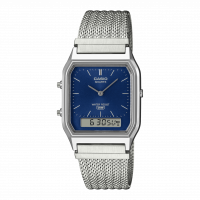 모두가 좋아하는 클래식의 재해석 - 아날로그-디지털 콤비네이션 AQ-230은 각진 문자반과 촘촘한 우븐 메시 밴드로 스타일리시하고 우아한 느낌을 선사합니다. 특수 압착 공정을 통해 깊이와 입체감을 더한 메시 밴드는 섬세한 빈티지 스타일과 함께 손목에 꼭 맞는 편안한 착용감을 선사합니다. 실버 케이스를 보완하는 네이비 또는 실버 색상의 다이얼을 선택해 보세요. 메시 밴드로 재해석된 클래식한 디자인은 메탈 메시의 아름다움을 강조해 보다 인상적인 스타일을 연출하며, 그 자체로도 정교하고 우아한 느낌을 선사합니다.